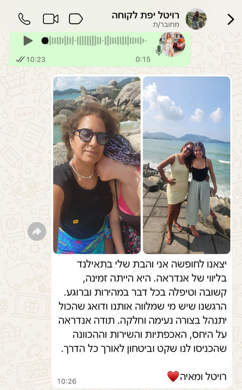אנחנו מלווים אתכם באופן אישי משיחת הייעוץ הראשונה ועד שתשובו מהחופשה – עם מענה אנושי, זמין, מקצועי וסבלני.